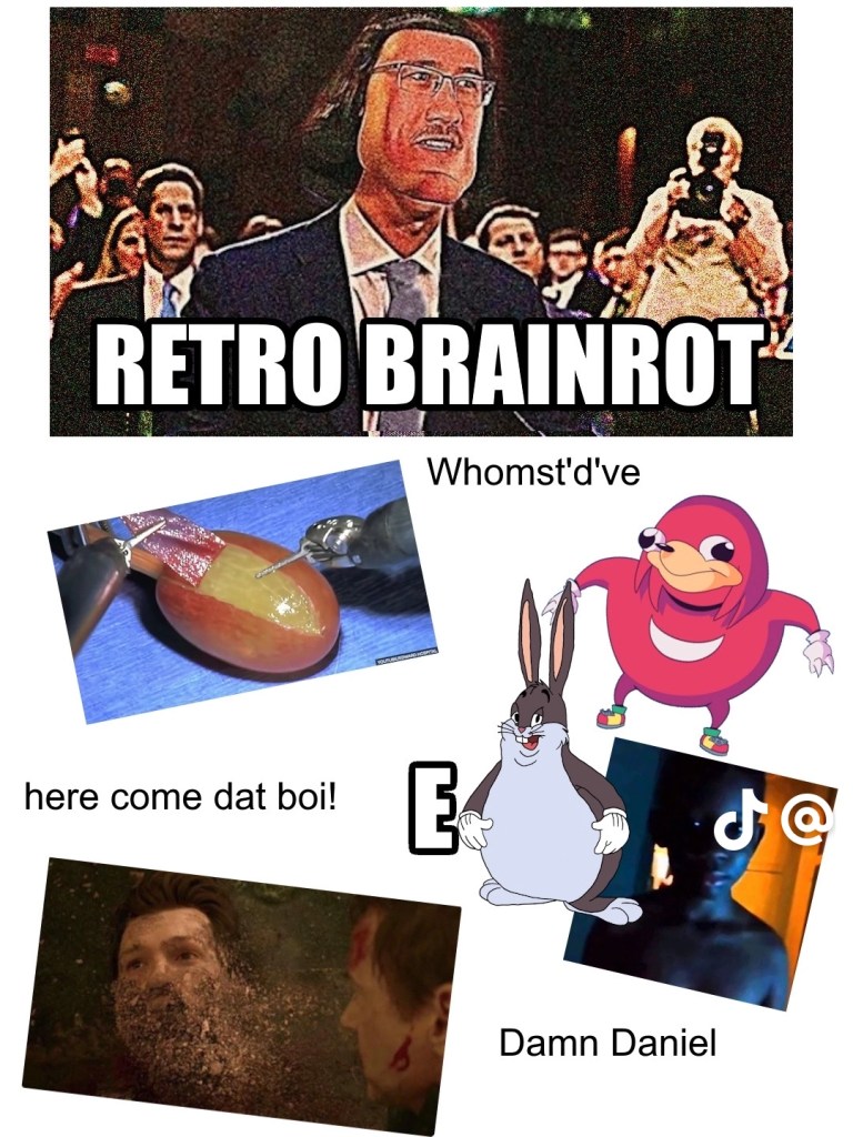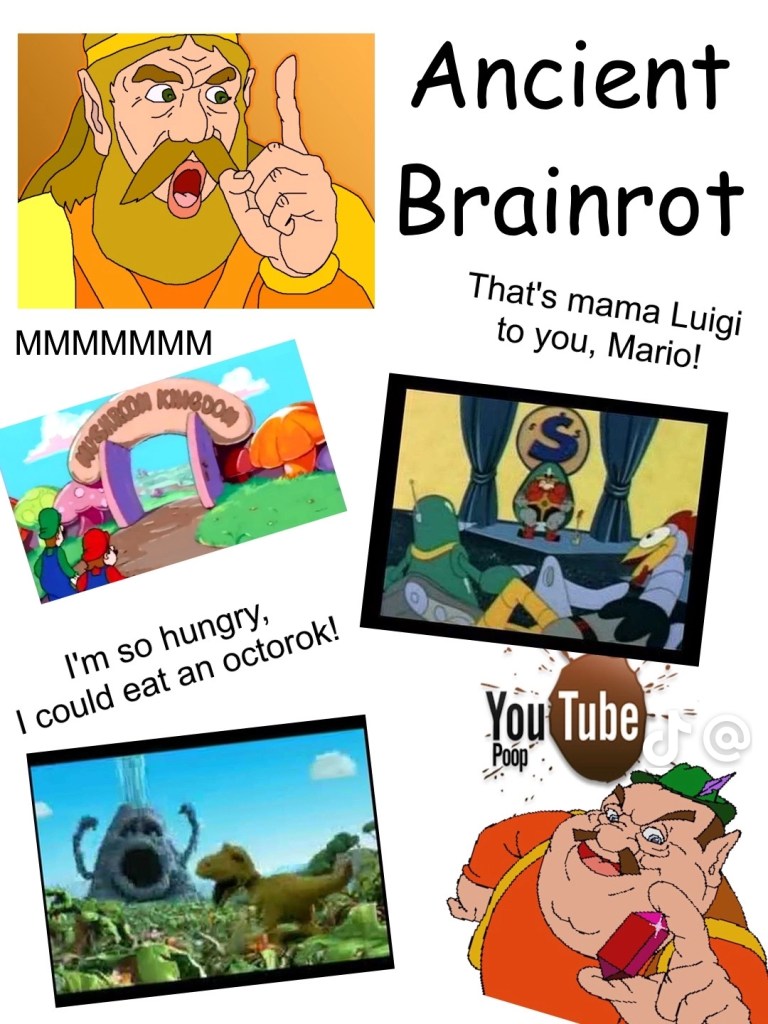 Being contrary has always illuded to some form of comedy. Brainrot typically takes memes which have crossed from the underground depths of the internet into popular culture, and meta-ironises them through repeated overuse and re-contextualisation. One of my first examples of this was the YouTube Poop series, which took popular video content – whether it be TV shows, movies or other online media – and re-edited them to produce new ‘comedic’ content. One of the more damaging cases of this was the various videos involving Michael Rosen, a childrens poet. Editing his spoken-word poems into luwd and often racist and/or sexist remarks has serious personal and professional impacts. That being said, anything uploaded on the internet seems to be free rein for other content creators to ‘creatively reinterpret’, with outdated and inaccurate copyright and ‘fair use’ laws even preventing such pervasive content from being taken down.